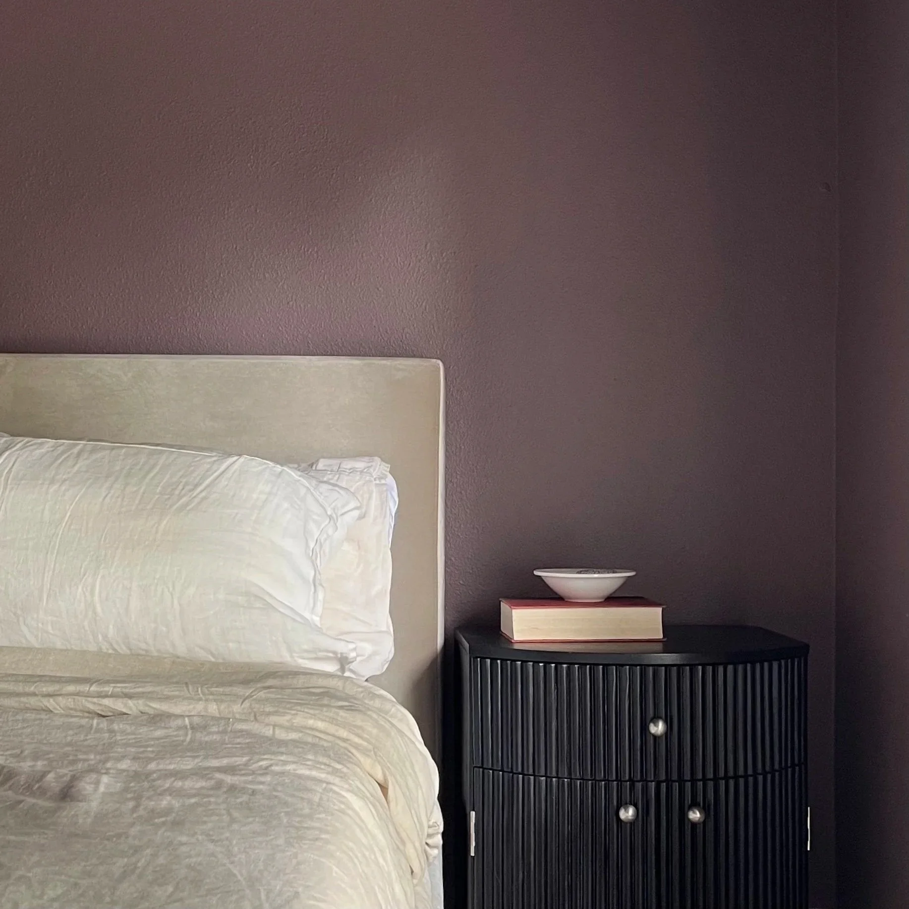 Cozy. Warm. Enveloping. Words like this and more used to describe our client’s vision for their primary bedroom in their new home. Rather than explore classic shades of blue or warm neutrals, our clients were willing to discover warmth in unconventional colors like shades of dusky plum. Taking their trust one step further, we encouraged them color-drench the space, creating the ultimate relaxing cocoon!