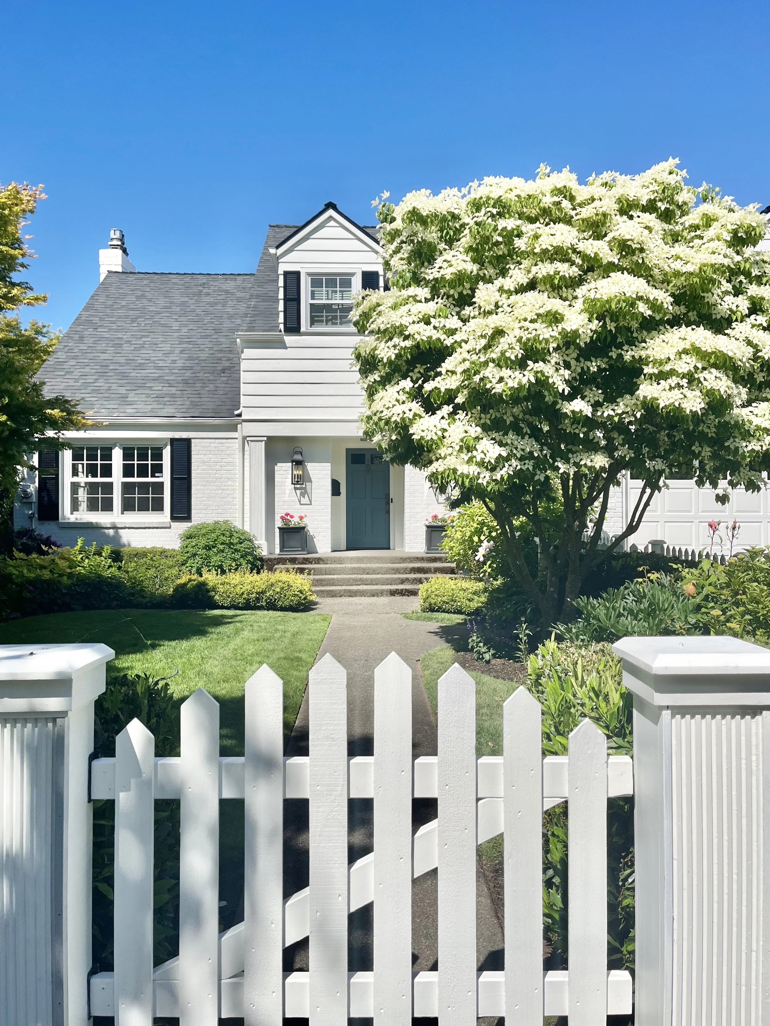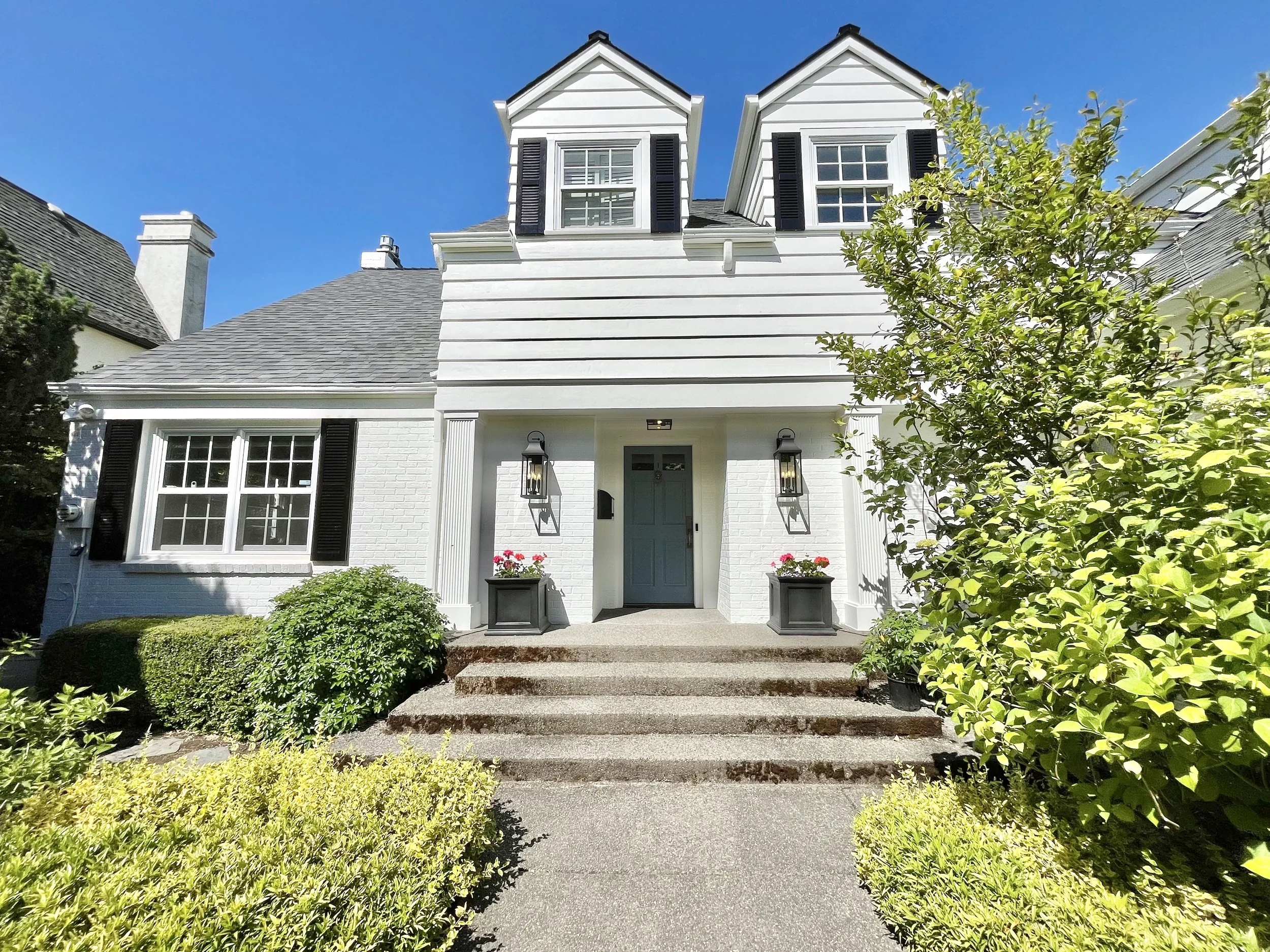 Inspired by gorgeous estates on the east coast, this cape cod-inspired home in Magnolia received the refresh it was waiting for! By keeping things bright and warm for nearly all exterior siding and trim elements, this home feels timeless and lively without drawing too much attention to itself. Instead, it provides the perfect backdrop to the gorgeous landscaping and views of Elliot Bay just beyond the property line. After all, nature is always the best inspiration when it comes to front door colors.